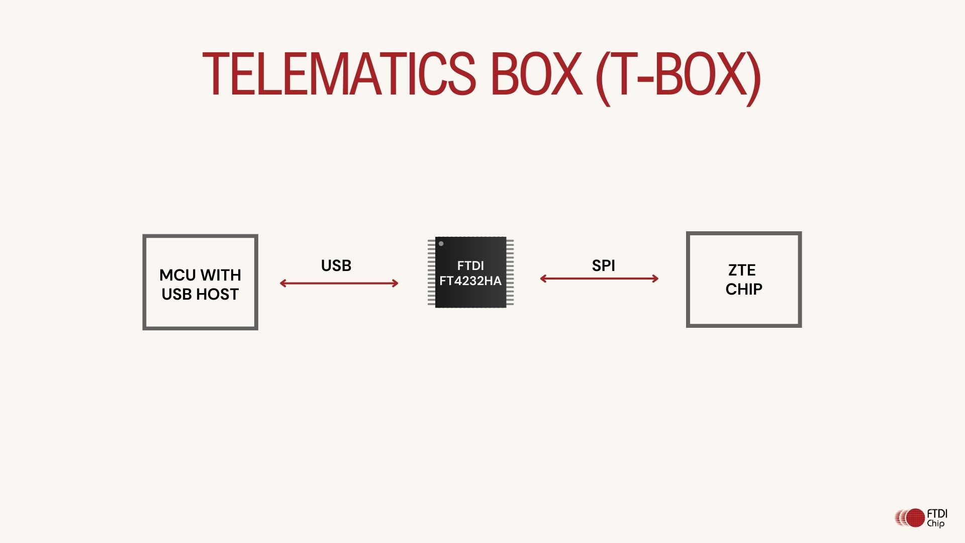Below is a block diagram of an application example using FT4232HA in a TBOX system.