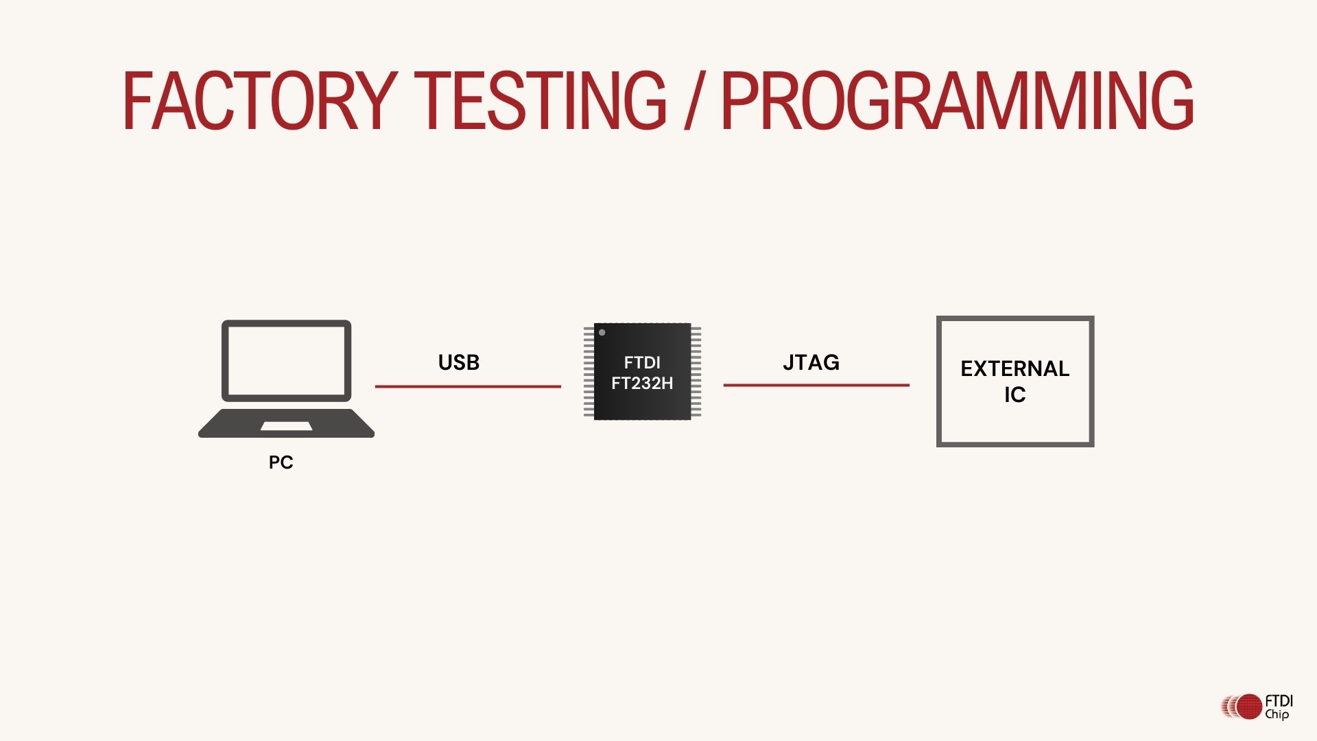 The FTx232H is commonly used for JTAG (Joint Test Action Group) programming and debugging. It’s a versatile USB-to-serial / FIFO IC (Integrated Circuit) produced by FTDI, offering various interfaces including UART, SPI, I2C and JTAG which is well suited for Factory Testing & Programming application.